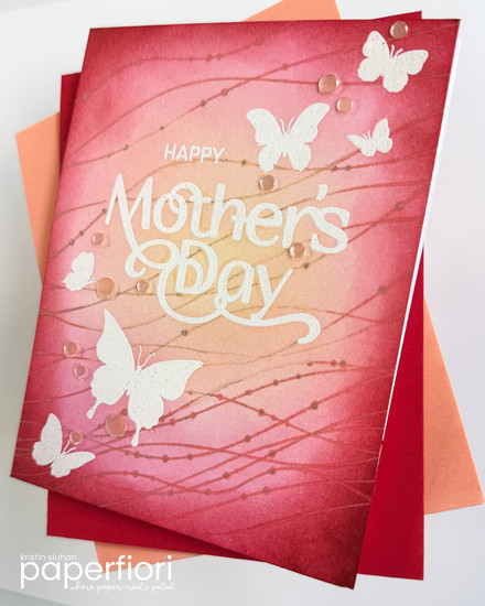 I've had the opportunity to work with their Mother's Day stamp set for the release, and this it PERFECT for making cards for my mom. Not only is she an amazing woman, she loves butterflies. The sweet and simple silhouette butterflies in this set perfectly complement the sentiments for creating beautiful Mother's Day cards.